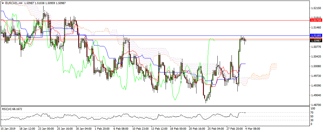 В пятницу единая европейская валюта укрепилась против канадского доллара. Это было связано с публикацией данных ВВП Канады за декабрь, рост замедлился в четвертом квартале 2018 года до 0.1%, а за декабрь -0.1%. Также, производственный секторе Канады расширился в феврале самыми медленными темпами за более чем два года, поскольку рост нового бизнеса уменьшил темпы роста рабочих мест.