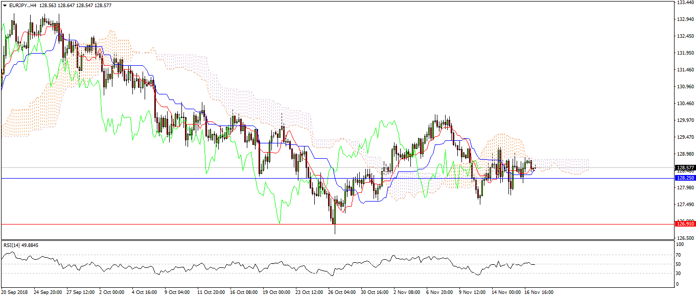 Технические индикаторы Ichimoku (цена находится в облаке, линия краткосрочного тренда Tenkan и линия среднесрочного тренда Kijun двигаются горизонтально) и RSI (находится на уровня 51). Рассматриваем продажи после закрепления под уровнем 128.25. Цель для снижения уровень 126.91.