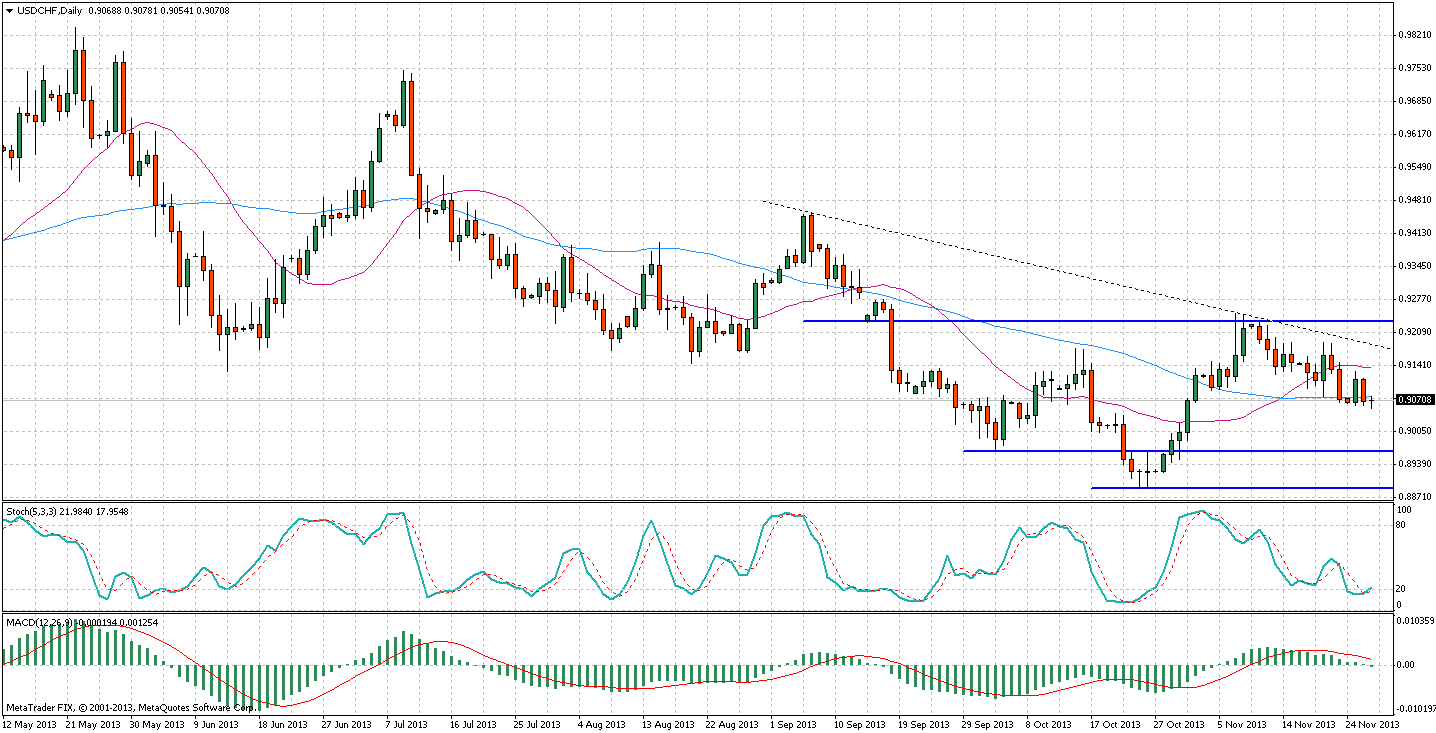 Поскольку в четверг выходной день по случаю праздника «День Благодарения», все запланированные на этот день новости будут опубликованы сегодня. Возможны резкие движения. Более вероятным выглядит очередное снижение пары до 0,9000 и далее до 0,8965.