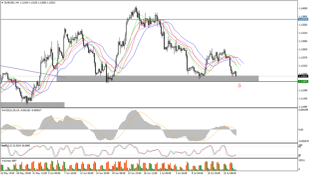 По состоянию на утро, 17 июля, ценовая отметка по валютной паре EUR/USD торгуется в диапазоне 1,1205 - 1,1215. Для входа в рынок рекомендуем дождаться пробития зоны поддержки 1,1190. Рассматриваем продажи.