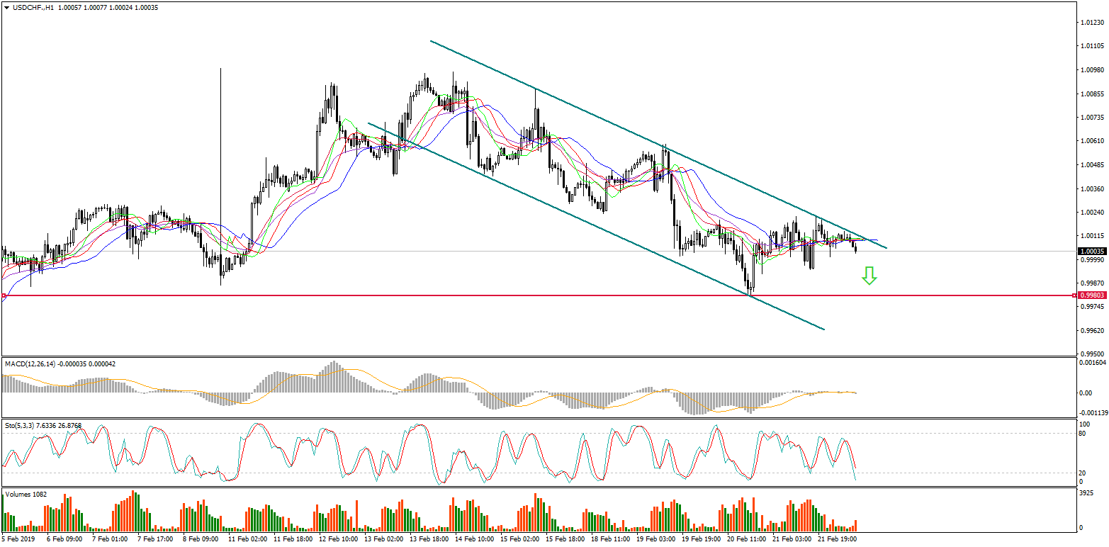 По состоянию на утро, 22 февраля, ценовая отметка по валютной паре USD/CHF торгуется в диапазоне 1,0005 - 1,0007. Рассматриваем продажи. Сигналом для входа в рынок, будет пробитие уровня поддержки 0,9980.